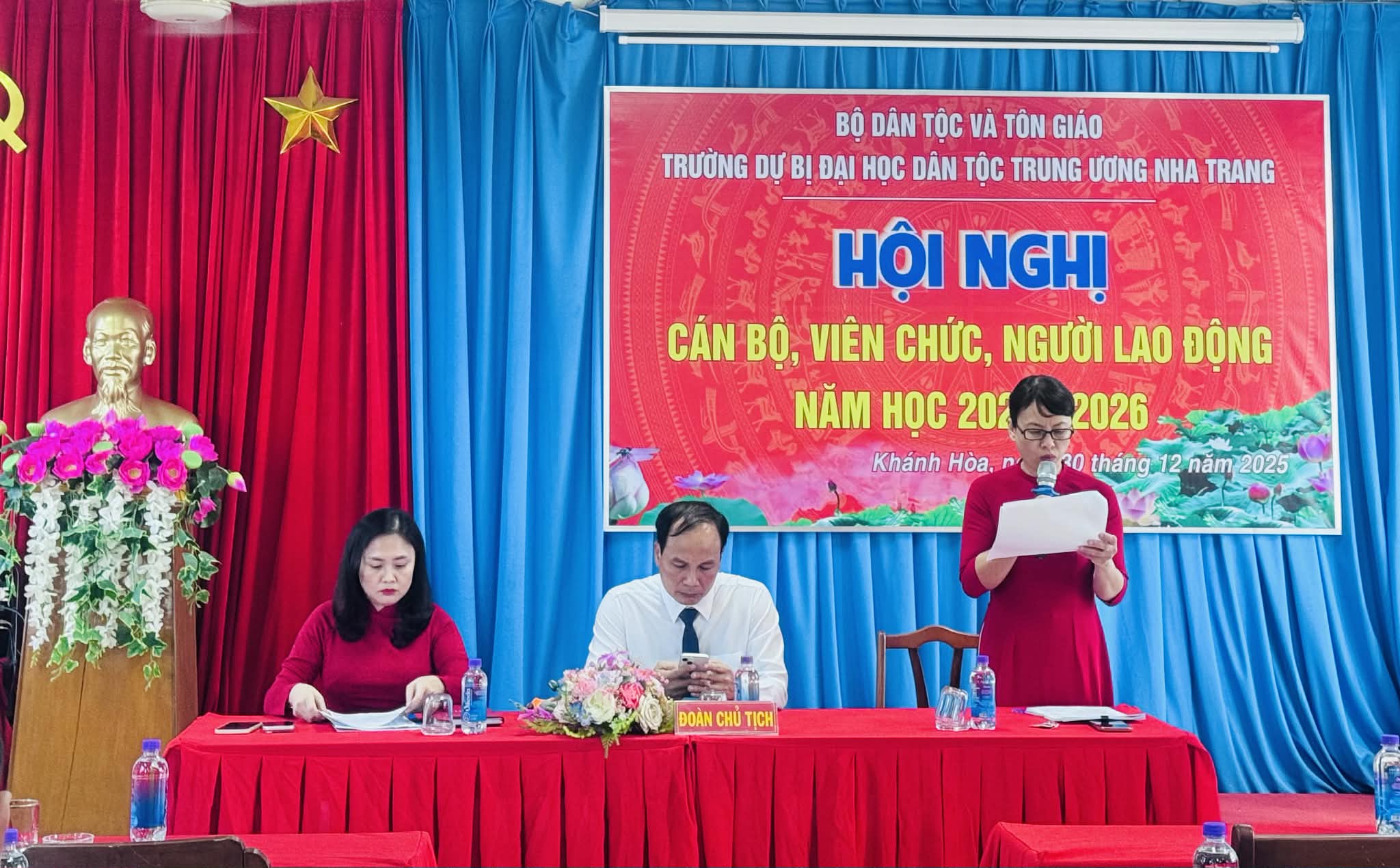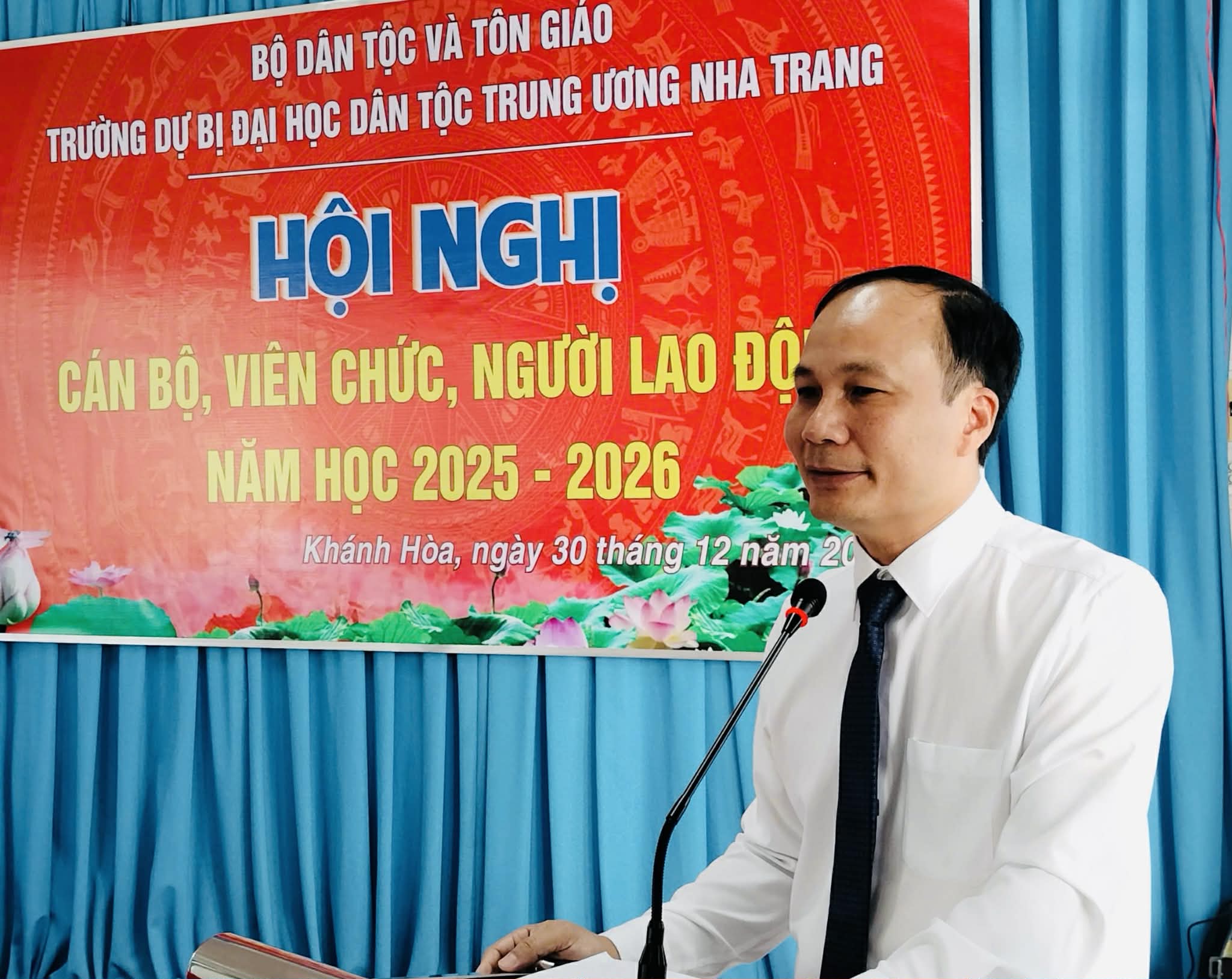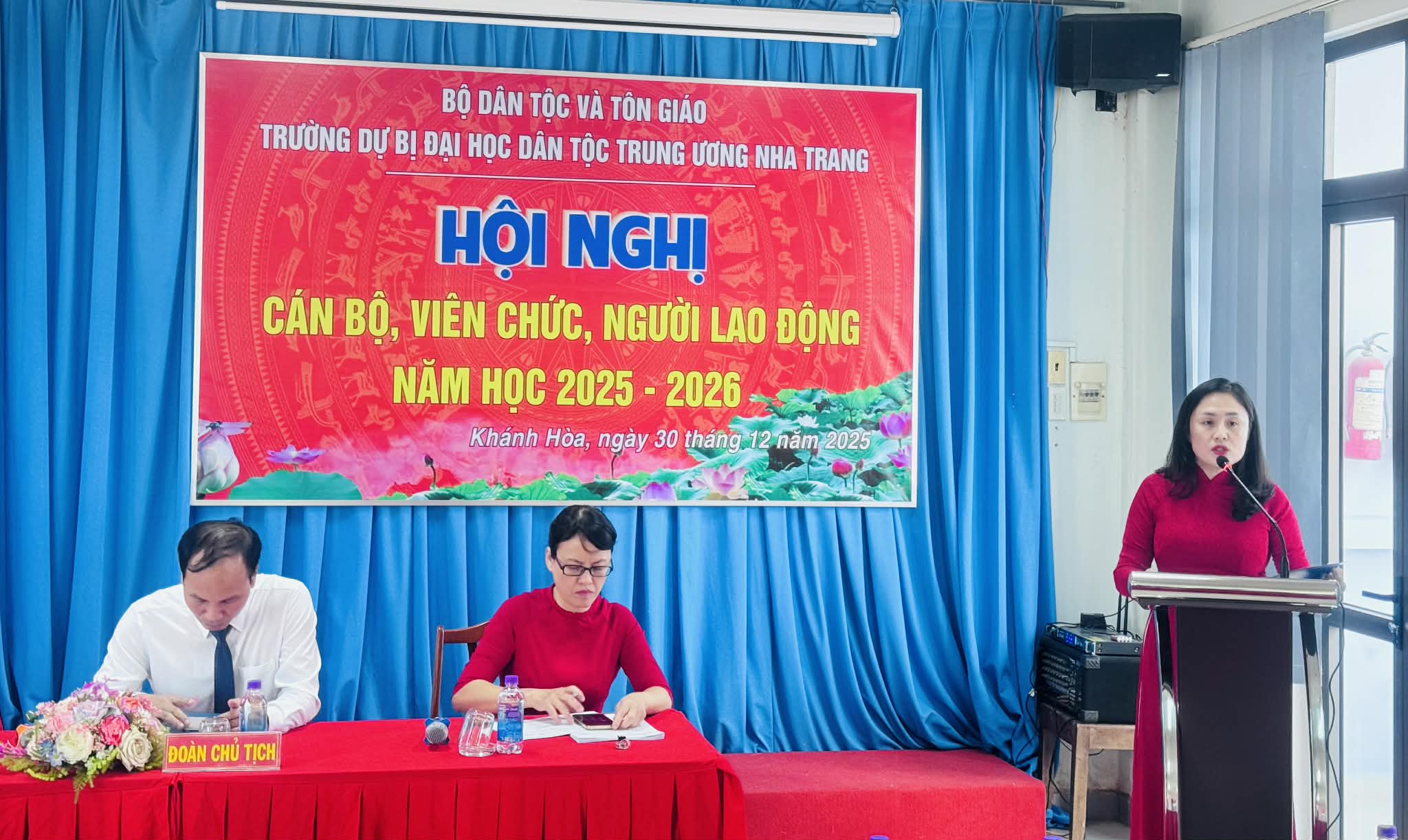 Hôm nay, ngày 30/12/2025 Trường Dự bị Đại học Dân tộc Trung ương Nha Trang tiến hành tổ chức Hội nghị cán bộ, viên chức và người lao động năm học 2025 – 2026;